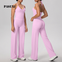 पासुशी कस्टम लोगो महिला ग्रीष्मकालीन योग जंपसूट आस्तीन रहित बैकलेस उच्च कट पैर-त्वरित शुष्क जिम योग सक्रियता