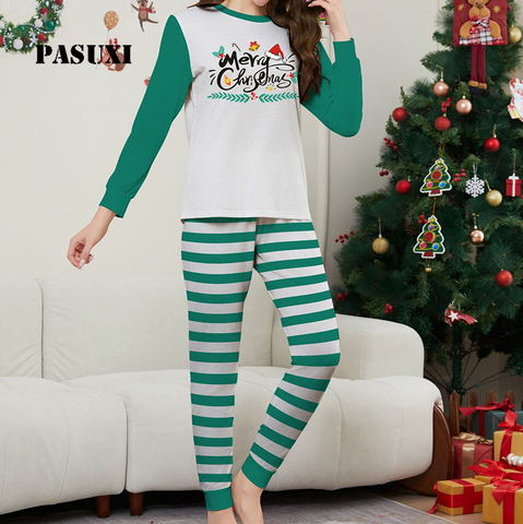 Pasuxi 2025 המשפחה החדשה התאמת חג המולד סט פיג 'מה סט לנשים גברים ילדים תינוקות-pjs חג פליס נעים עם הדפס אותיות