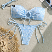 PASUXIセクシーな花柄ビキニセット女性タイサイドチューブトップ水着特別なリブ生地ビーチウェア2025