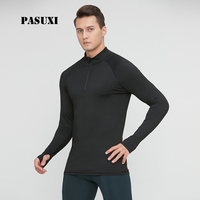 חולצת ספורט ארוכת שרוולים לגברים מבית PASUXI, דגם סתיו, ארוגה, עם בטנה, ייבוש מהיר, מתיחה 4 כיוונית, ביצועים גבוהים, מתאימה לחדר כושר, ריצה ופעילות גופנית.